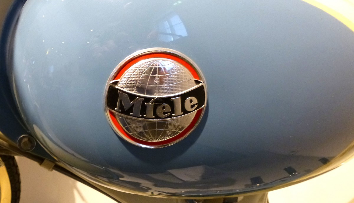 Mielewerke AG Gütersloh, Tankemblem am Moped K35 von 1960, Miele zählte in den 1950er Jahren zu den größten Herstellern von Leichtkrafträdern in Deutschland, Nov.2014