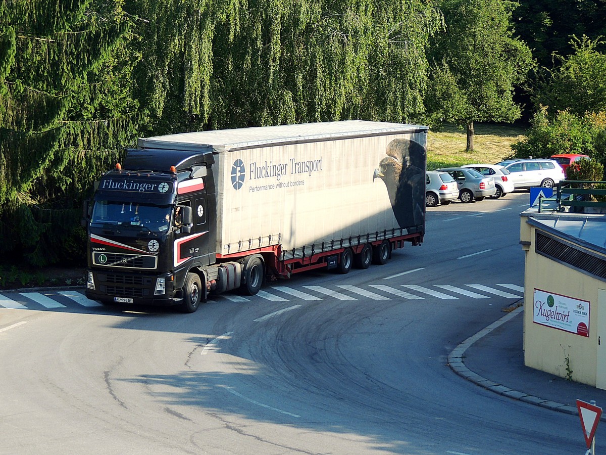 VOLVO-460 FH12; von Fluckinger durchfährt das Rieder Stadtgebiet; 140618