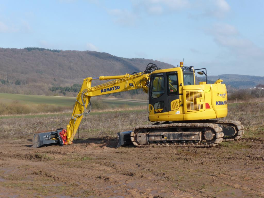 Komatsu PC 138 US-10 eingesetzt beim Bau der Ortsumgehung Konz-Könen (22.02.2015)
