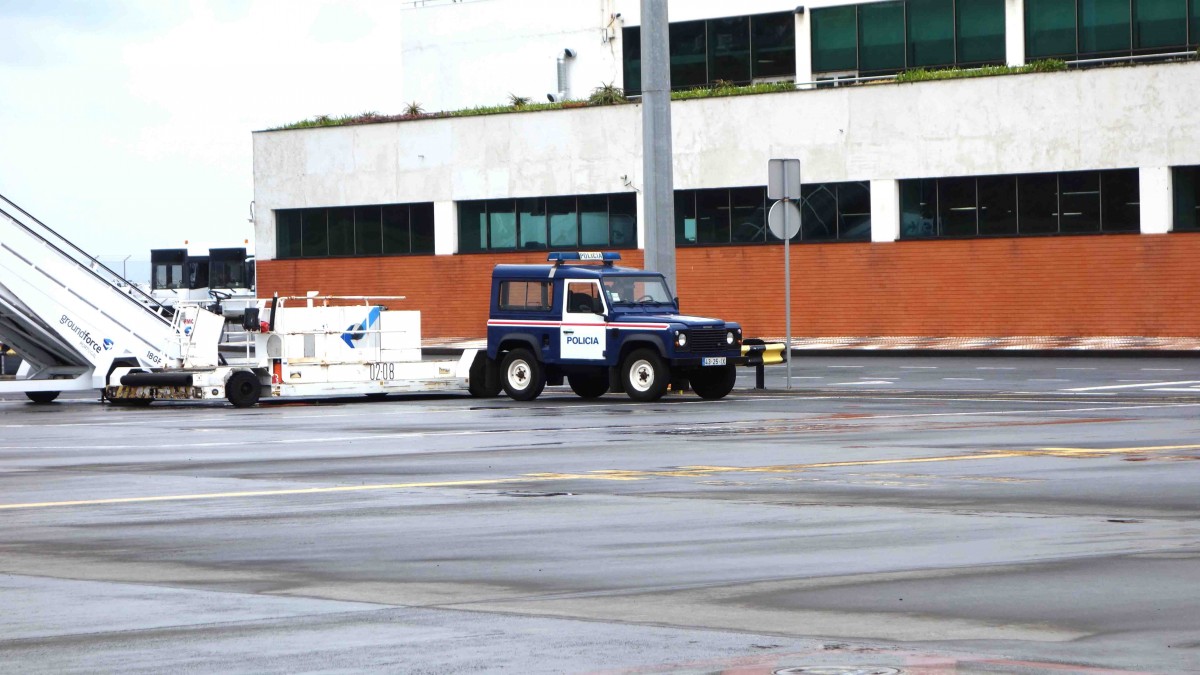 Land Rover Defender der Polizei von Madeira steht auf dem Vorfeld vom Airport Funchal im März 2015