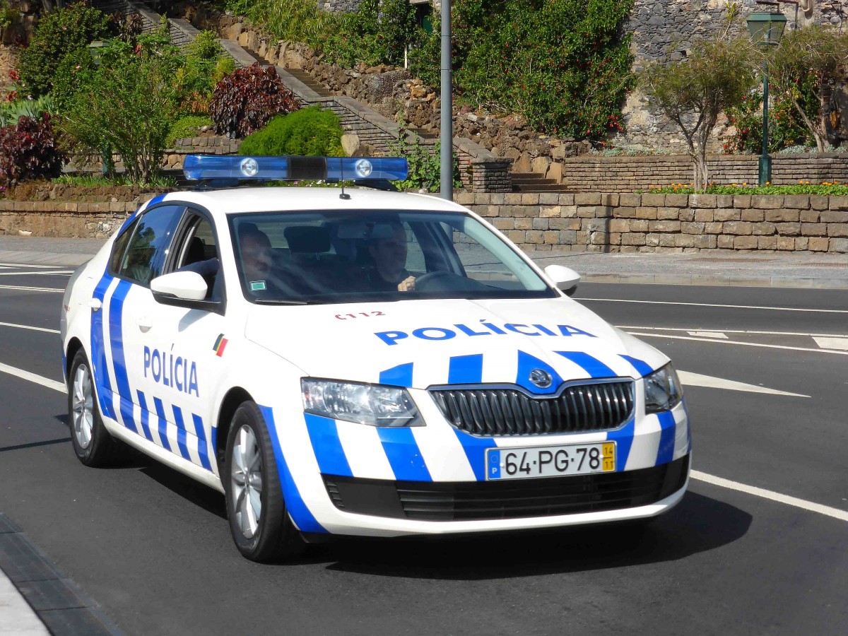 Skoda als Polizeifahrzeug unterwegs in Funchal/Madeira im März 2015