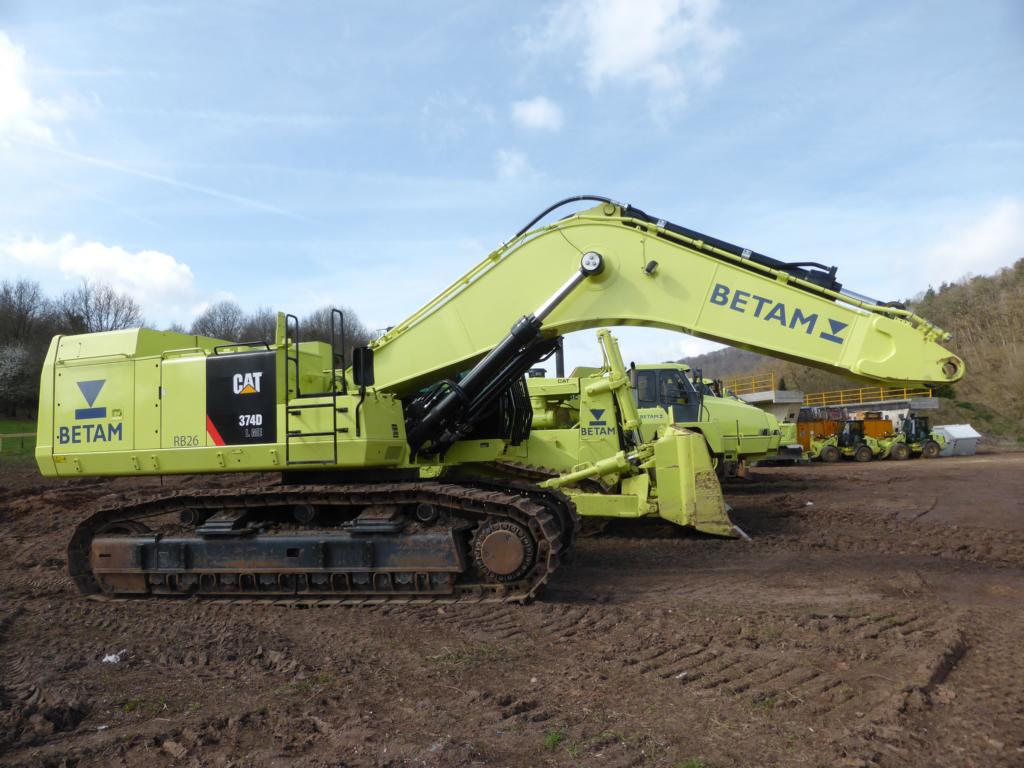 Caterpillar 374D LME wird eingesetzt beim Bau der Ortsumgehung Konz-Könen (12.04.2015)