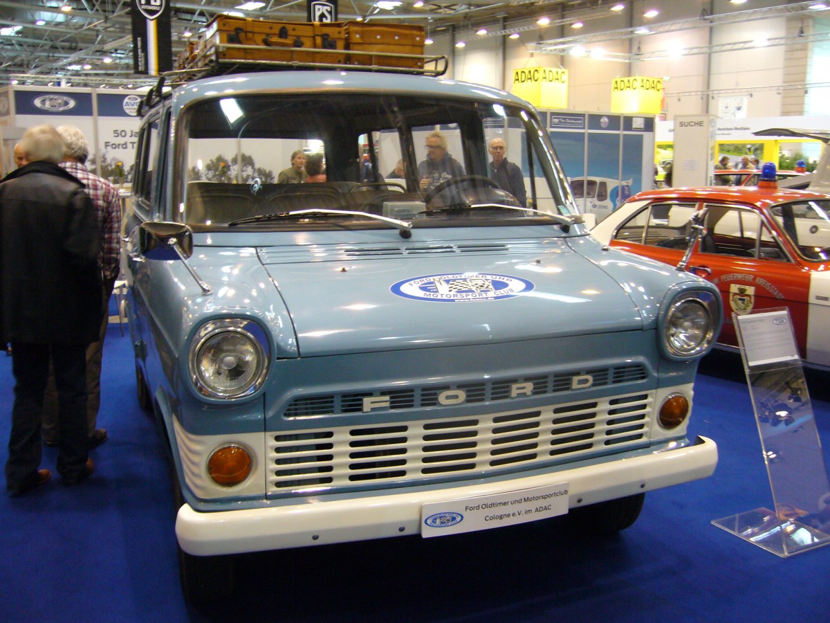 Ford Transit MKI 900. 1965 - 1970. Der bei den englischen Ford-Werken konstruierte Transit MKI wurde in Southhampton/GB, Genk/B und in Köln-Niehl produziert. Im 900´er Transit werkelt unter der Haube der aus dem Taunus bekannte 4-Zylinderreihenmotor mit 1498 cm³ Hubraum und 60 PS. Techno Classica am 18.04.2015.