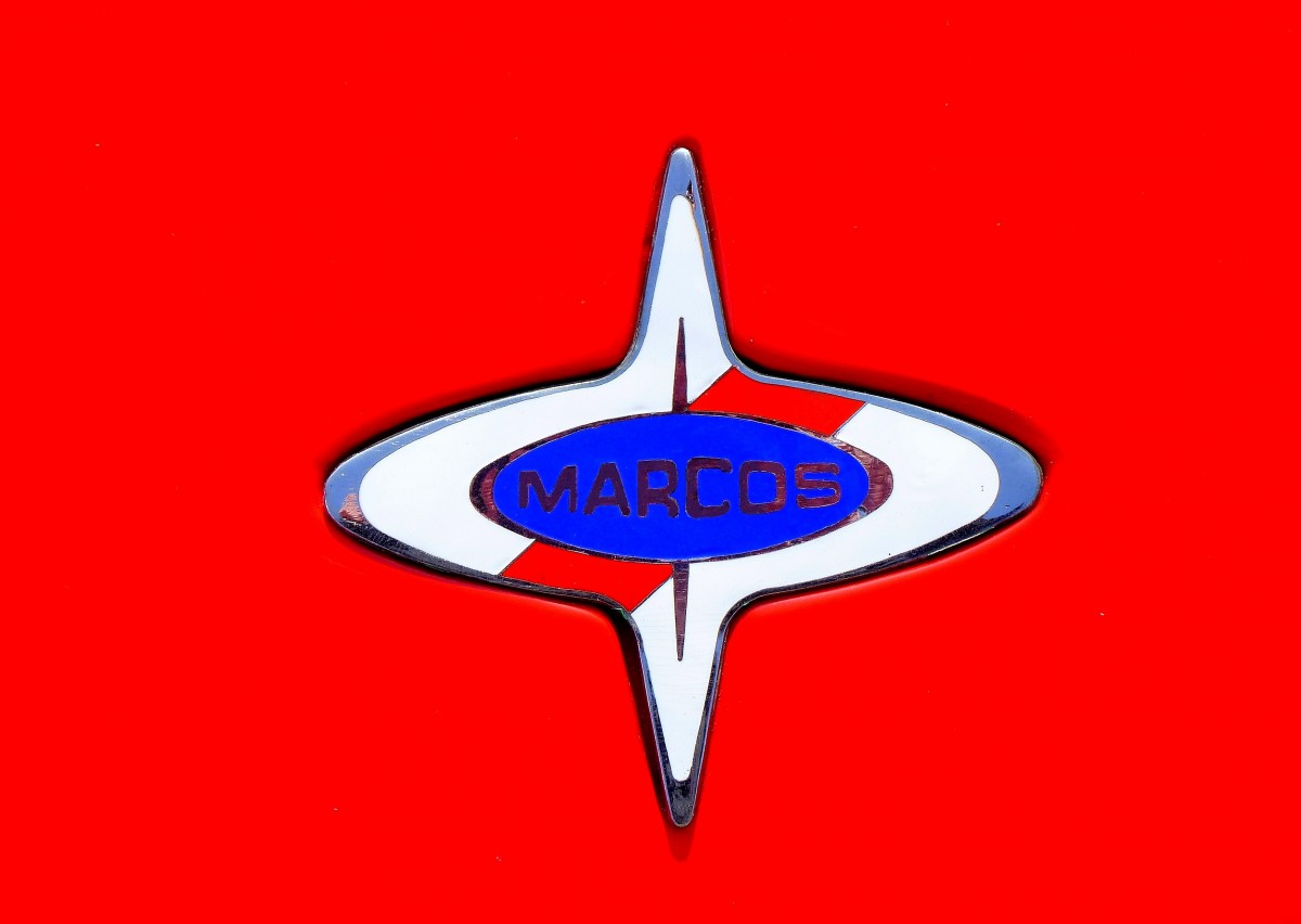 MARCOS Cars, Logo auf der Motorhaube eines Sportwagens der britischen Firma, gegründet 1959, April 2015