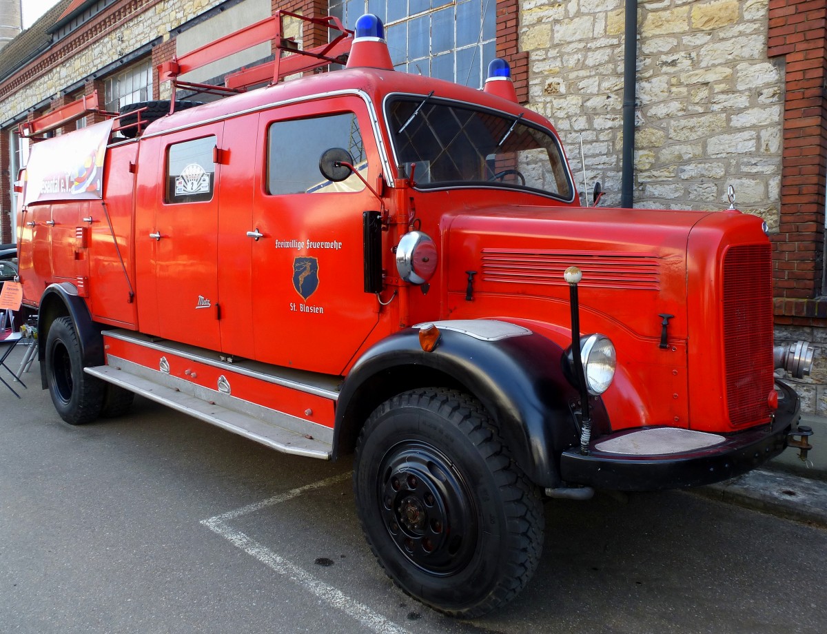 Mercedes Benz, Feuerwehrauto der FF St.Blasien, zu Besuch bei der Oldierama Lörrach, März 2015