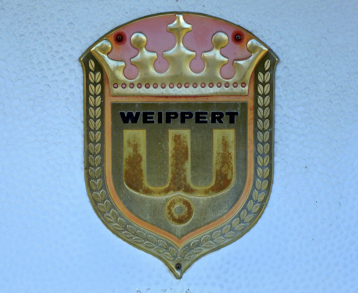 Weippert GmbH&Co.KG, Logo am Wohnwagen der Firma aus Kerken/Nordrhein-Westfalen, April 2015