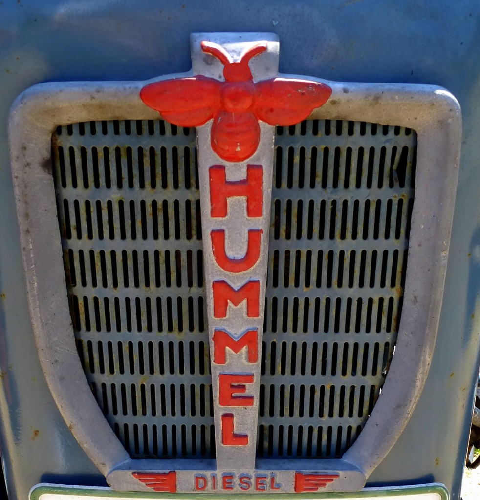 Hummel, Kühler mit Schriftzug und "Hummel" an einem Oldtimer-Ackerschlepper der Privatfirma aus Heitersheim/Baden, bestand bis Anfang der 1980er Jahre, Aug.2015