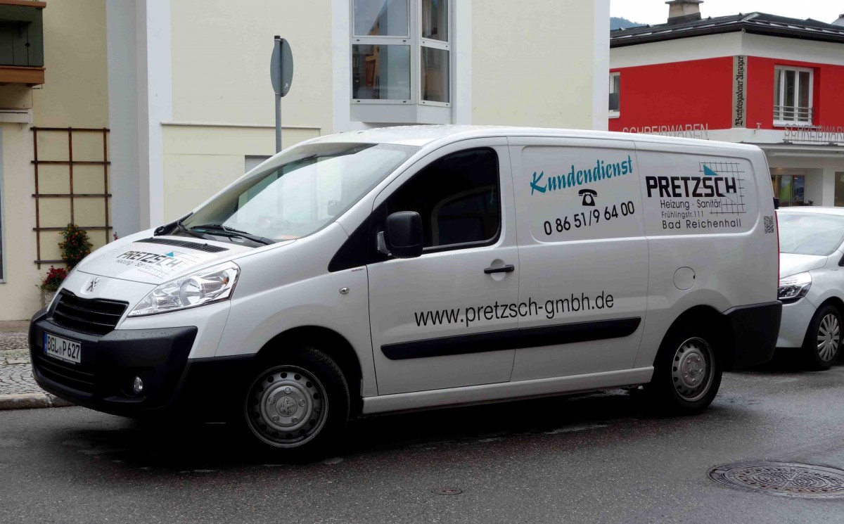 Peugeot der Glaserei Tölg steht auf einem Parkplatz in Bischofswiesen im Juli 2015