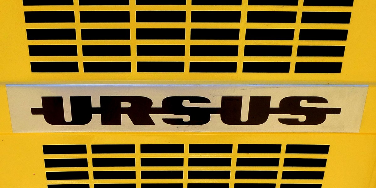 Ursus, Schriftzug an einem Oldtimer-Ackerschlepper, die polnische Firma ist benannt nach einem Stadtteil von Warschau, Aug.2015