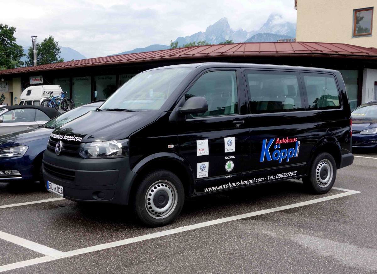 VW T5 der Deutschen Post steht am Bahnhof von Berchtesgaden im Juli 2015