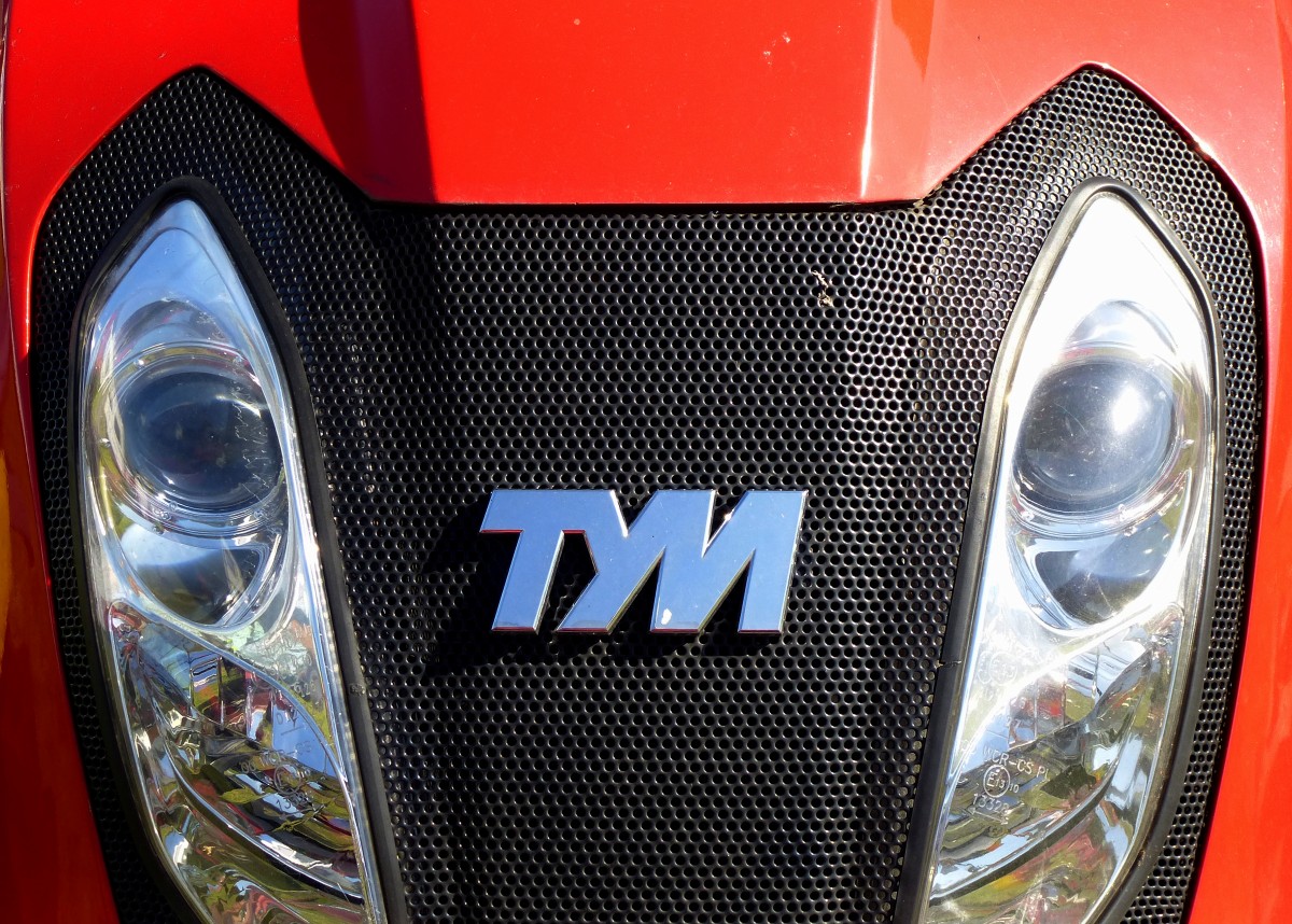 TYM, Schriftzeichen an der Kühlerfront eines modernen Kleintraktors aus Südkorea, Dez.2015
