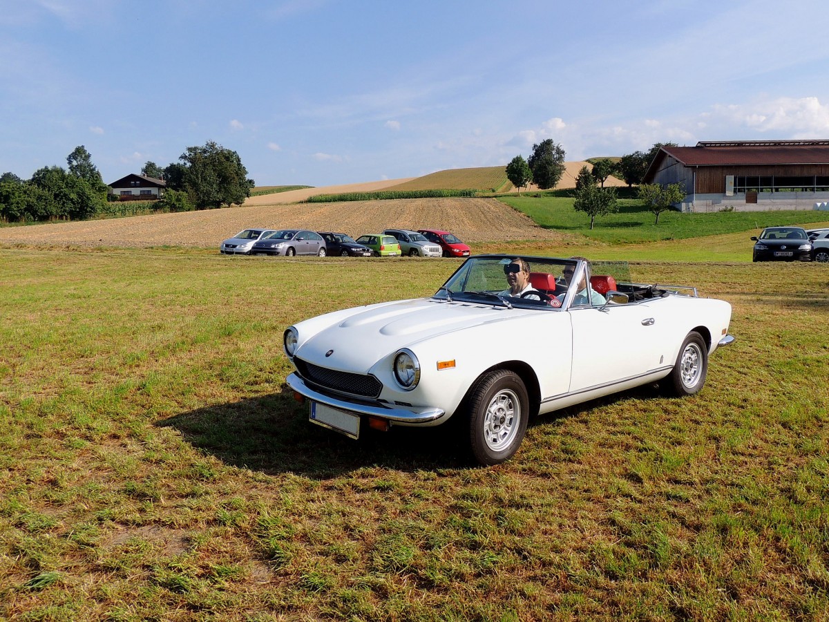Fiat 850 Spider der ersten Serie. 1965 - 1968. Dieser flotte Zweisitzer basierte auf dem 850 Coupe. Der im Heck verbaute, wassergekühlte 4-Zylinderreihenmotor leistet in diesem Modell 49 PS aus 843 cm³ Hubraum. Old- und Youngtimertreffen am 27.12.2015 in Krefeld.