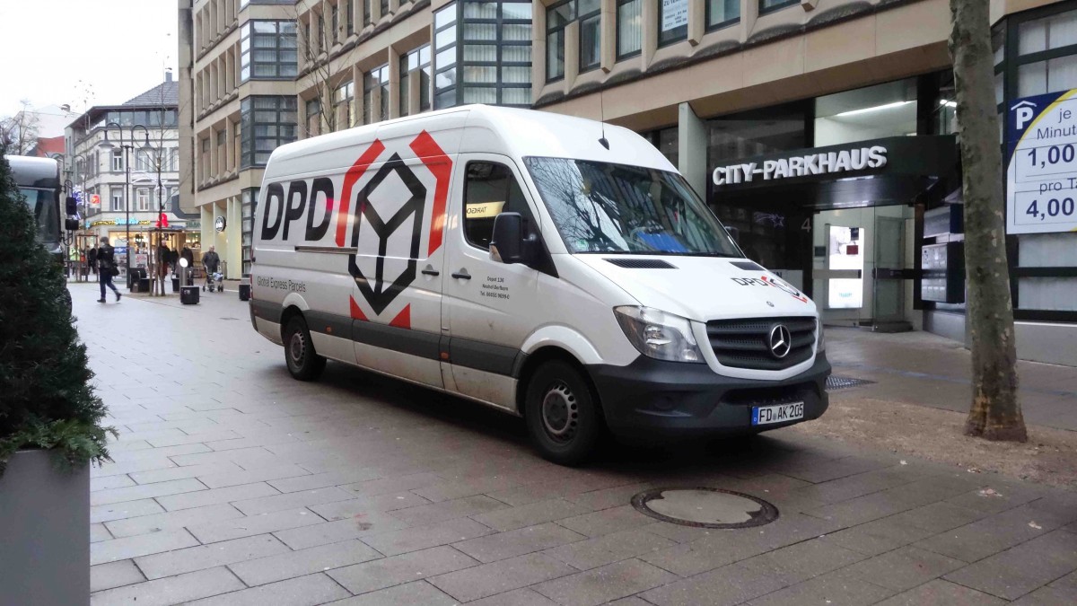 MB Sprinter von Trans-o-flex unterwegs in Fulda im Dezember 2015