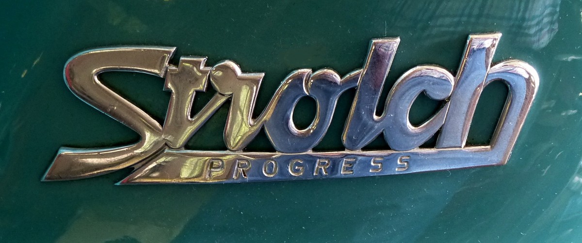 Progress-Werk AG Oberkirch, Schriftzug am Oldtimer-Motorroller "Strolch" von 1956, die Firma bestand von 1951-60, Feb.2015