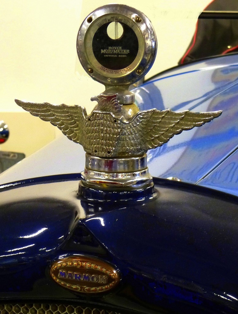 Marmon, Logo und Kühlerfigur an einem Oldtimer-PKW von 1922 der US-amerikanischen Autofirma, die von 1902-33 PKW baute und von 1963-97 LKW, Feb.2015