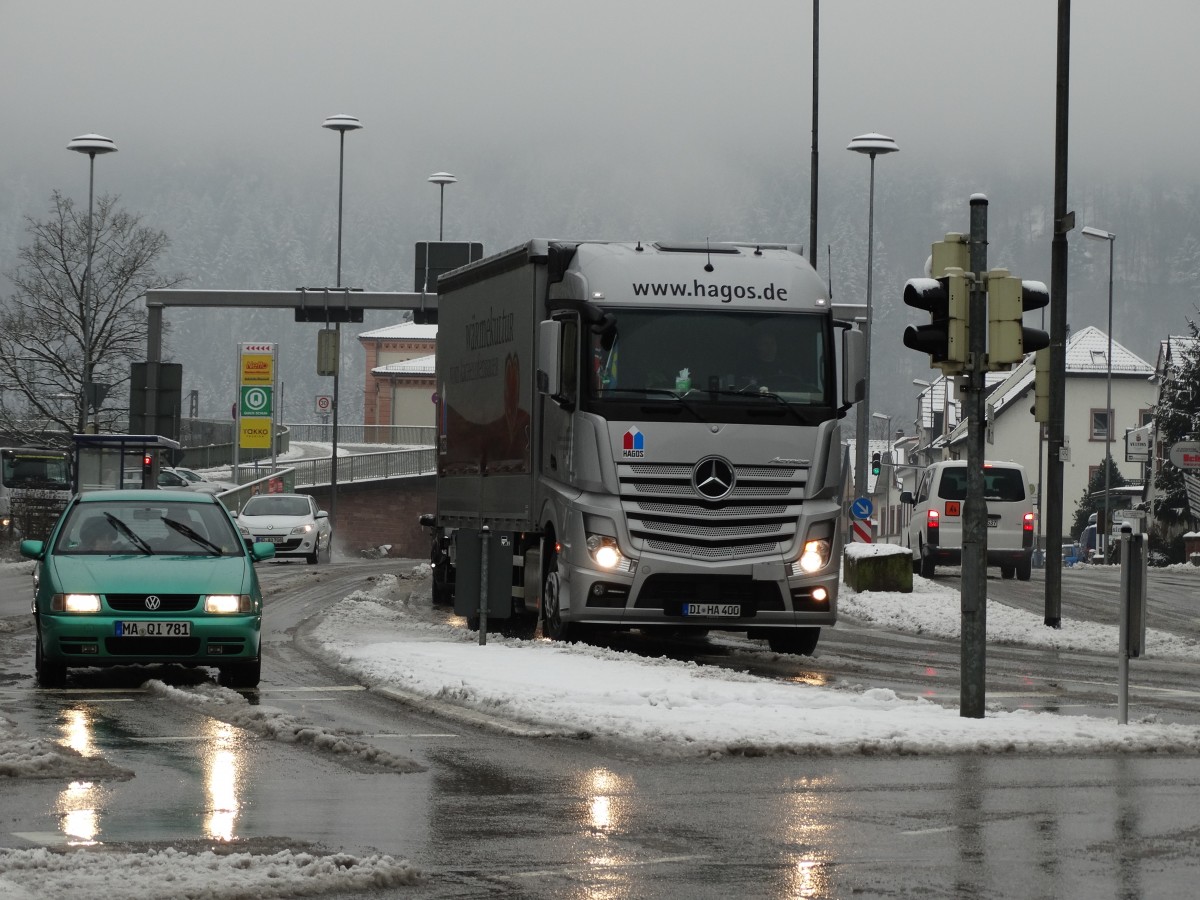 Mercedes Benz Actros Schneepflug am 23.02.15 in Neckargemünd