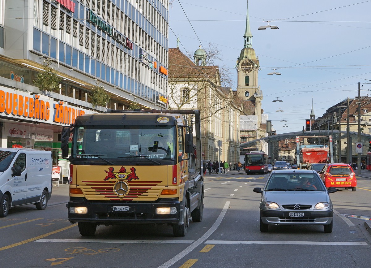 Mercedes Müllwagen in den Strassen von Chur unterwegs am 02.01.2015