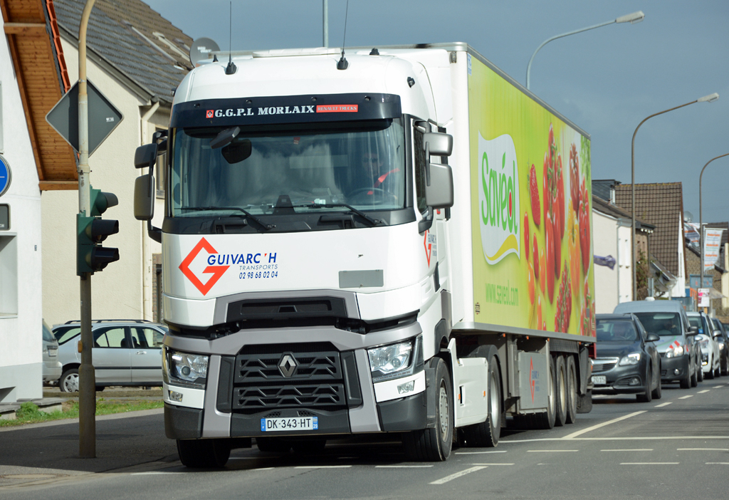 Renault aus Frankreich mit Kofferauflieger in Euskirchen - 01.04.2015
