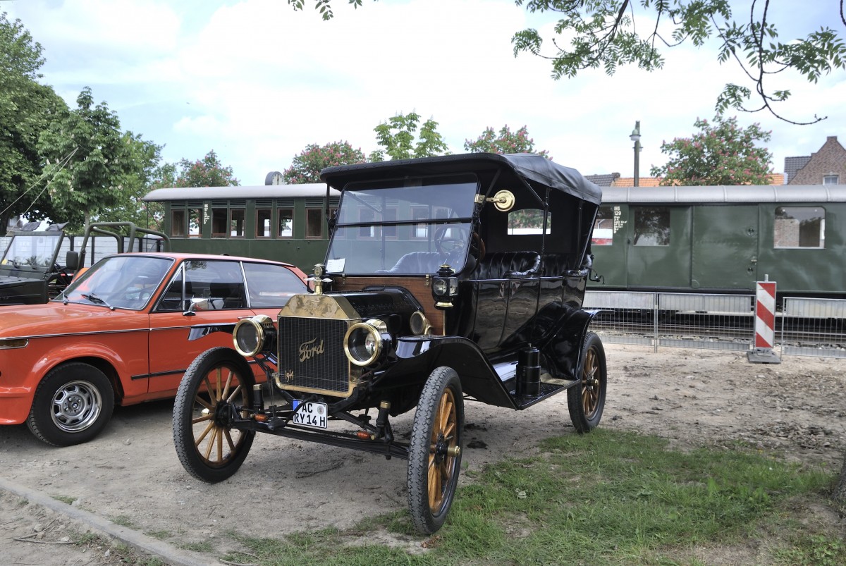 Ford T, Bj. 1914, ccm 2900, 4 Zylinder, höchstgeschwindigkeit 72 kmh. Hier in Schierwaldenrath "Schiene trift Strasse" am 24.Mai 2015