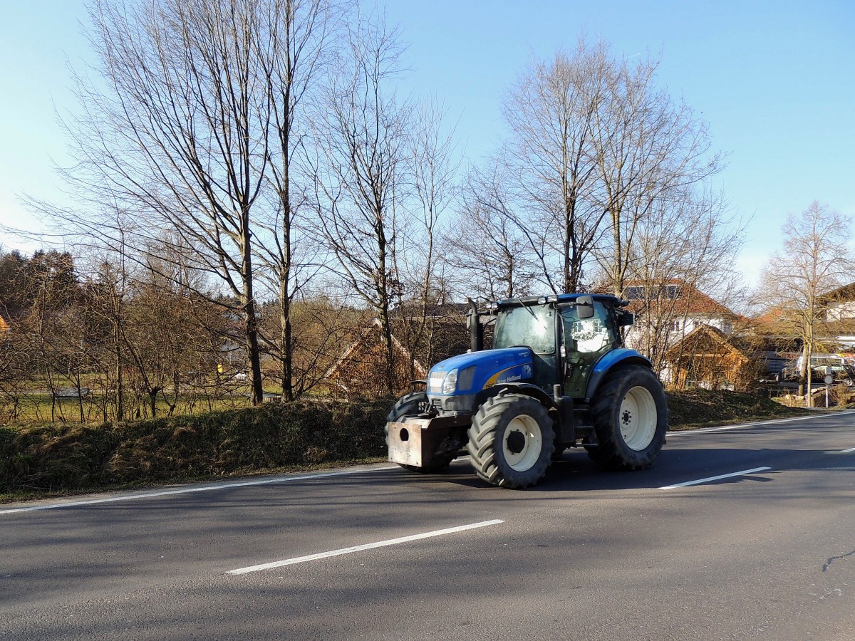 VALTRA mit einem Güllefaß am Weg zur nächsten Füllung; 150515