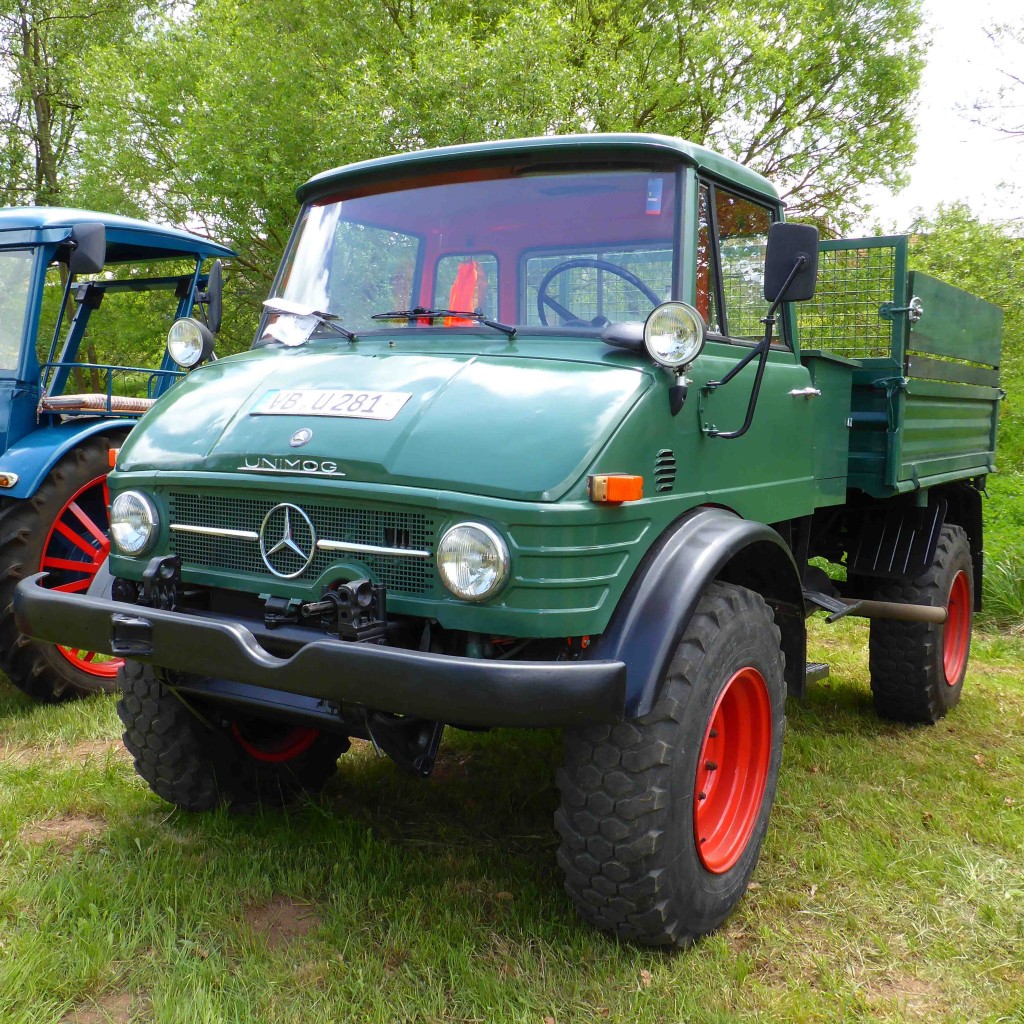 Unimog steht bei der Oldtimerausstellung in Hainzell im Mai 2015