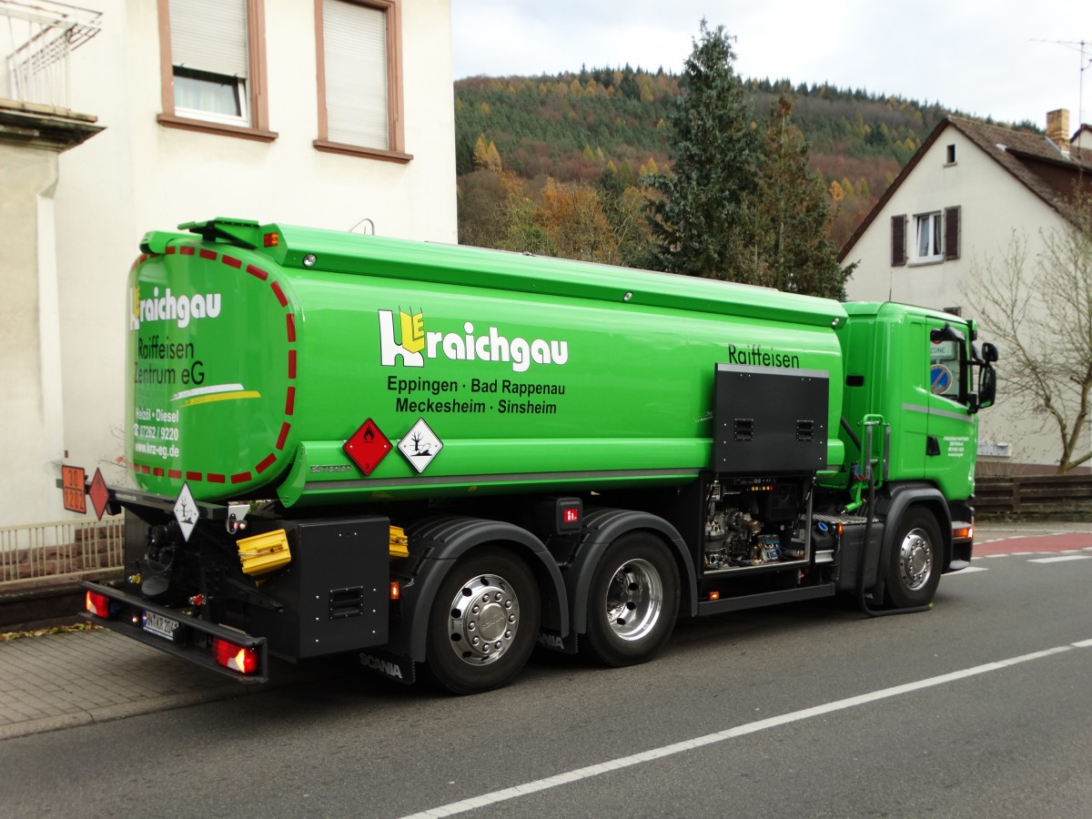 Raiffeisen Kraichgau Scania Tanklaster am 10.11.15 in Neckargemünd