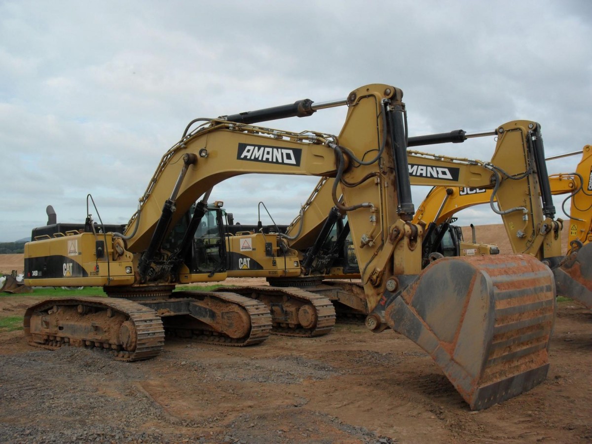 Caterpillar 345D LME eingesetzt beim Bau der B50n in der Nähe von Wengerohr, 03.07.2011