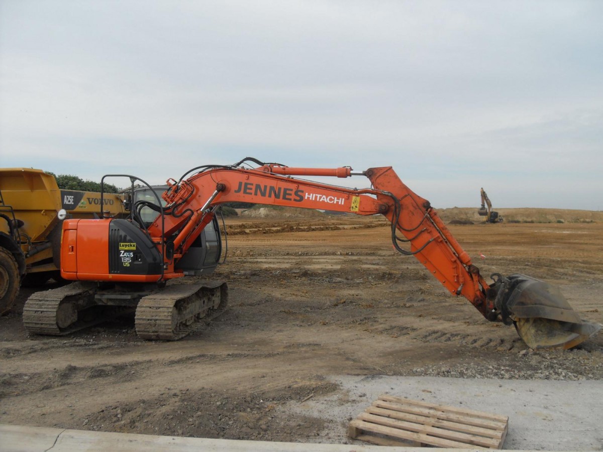Hitachi Zaxis ZX 135 US am 14.06.2009 auf einer Baustelle in der Nähe von Lüttich (B)