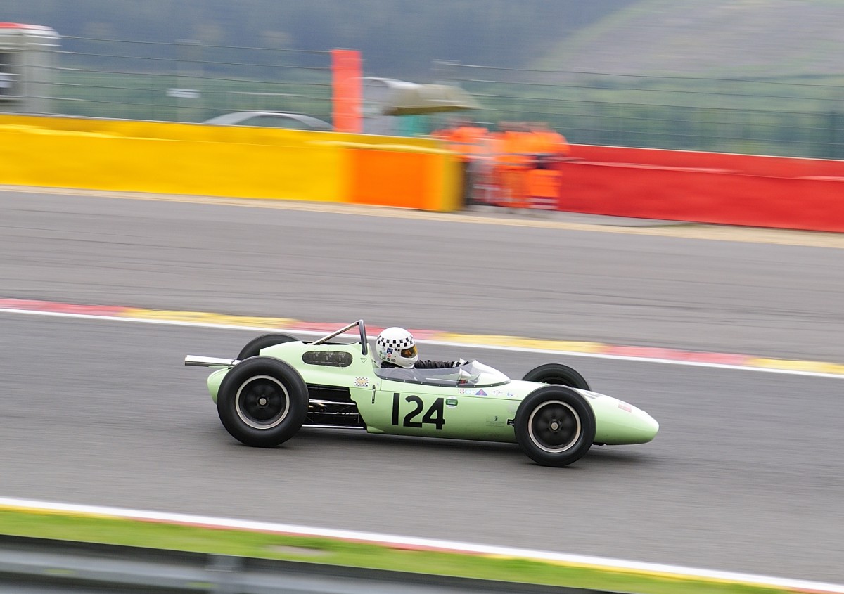 Mitzieher der Nr.111 BRABHAM BT11 5, Bj.1964, 1500ccm, Fahrer: ROMANO John (USA)),Class 11 - Pre 1966 1.5 litre multi-cylinder Formula 1 cars, beim Historic Grand Prix Cars Rennen, am 19.Sep.2015 im Rahmenrennen der 6h Classic