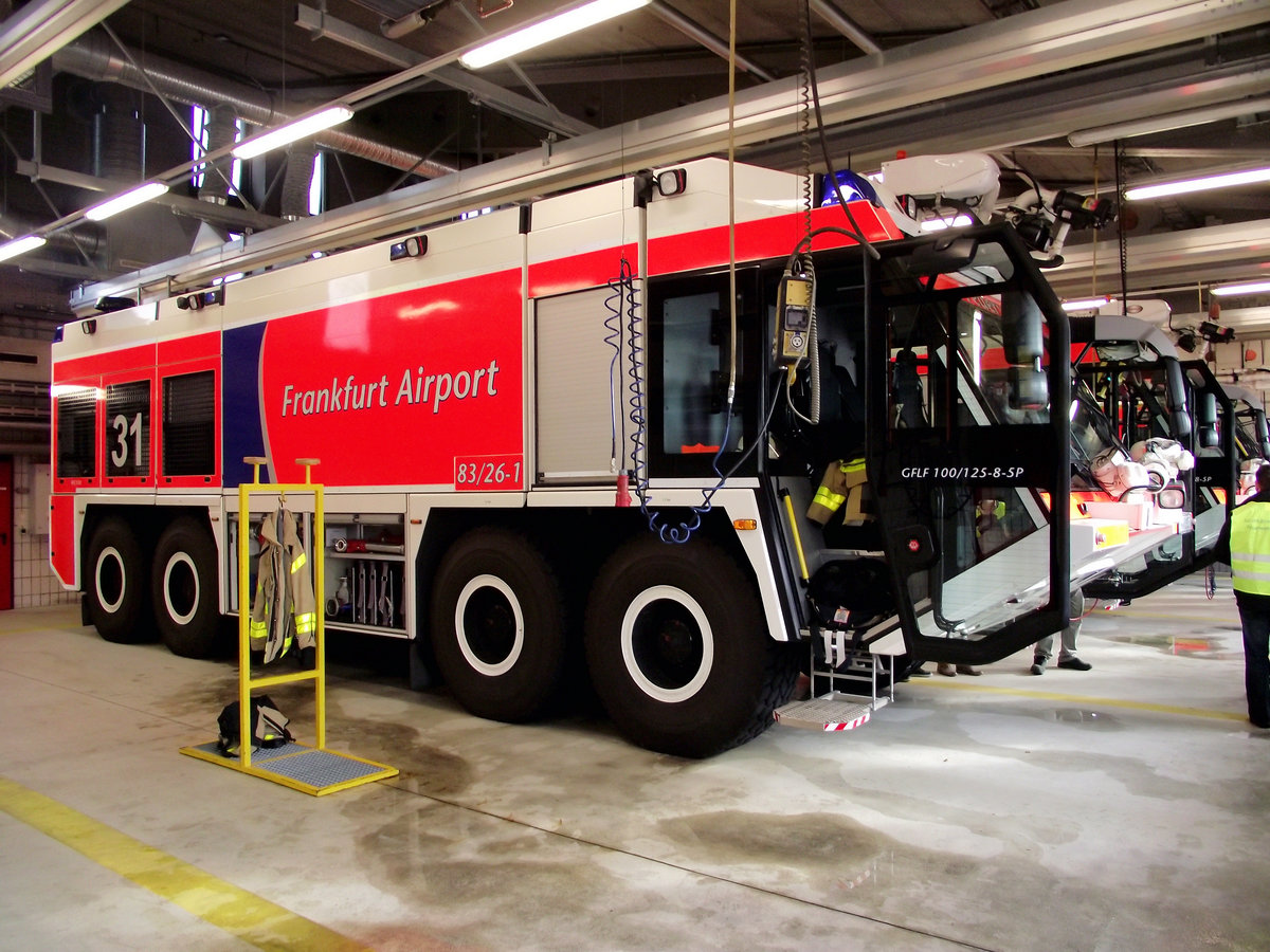 Flughafen Feuerwehr Frankfurt am Main Ziegler GFLF (Großflughafen Löschfahrzeug) am 06.10.13 bei einer Flughafen Feuerwehr Tour. Um an dieser Tour teilzunehmen muss man sich im Internet ung. 3 Monate im voraus anmelden und man bekommt dafür eine Flughafen Rundfahrt und eine Besichtigung der Feuerwache 3 am Flughafen