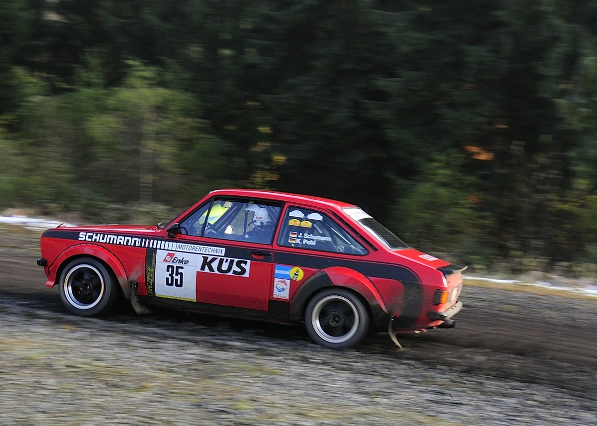 Jürgen Schumann & Kerstin Pohl mit der 35 auf Ford Escort RS 2000 bei der "Youngtimer" 39. ADAC Rallye Köln Ahrweiler 12.11.2016, vor der Mittagspause auf der Schotterpiste am Nürburgrin