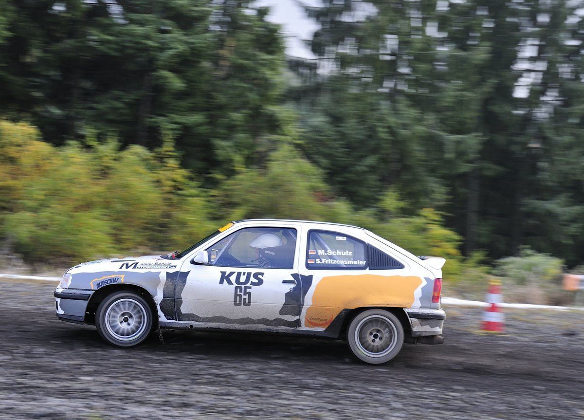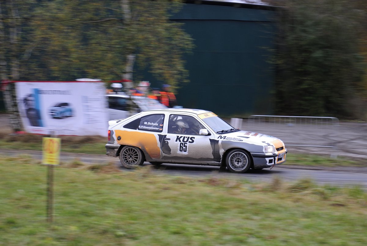 Opel Kadett E GSI, Markus Schulz & Stefanie Fritzensmeier bei der "Youngtimer" 39. ADAC Rallye Köln Ahrweiler 12.11.2016, vor der Mittagspause auf der Schotterpiste am Nürburgring