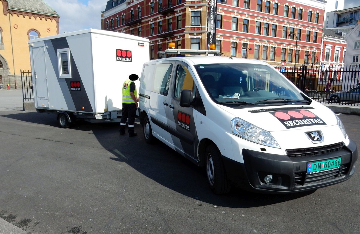 Transportfahrzeug Peugeot Partner der Securitas Sicherheitsdienste Norwegen am 08.09.16 in Stavanger.