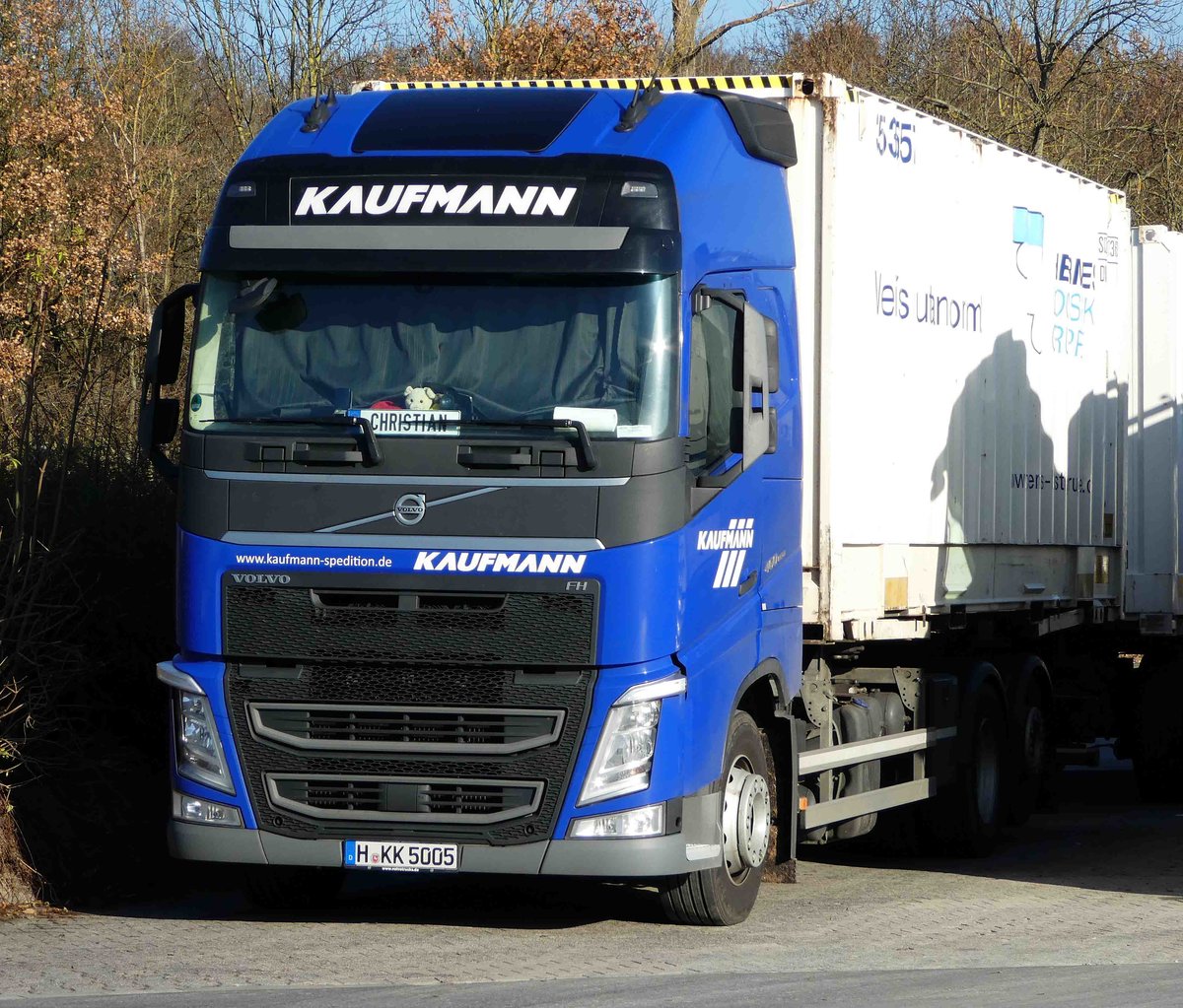 =Volvo- Hängerzug der Spedition "Kaufmann" rastet im November 2016 auf dem Autohof Fulda-Nord