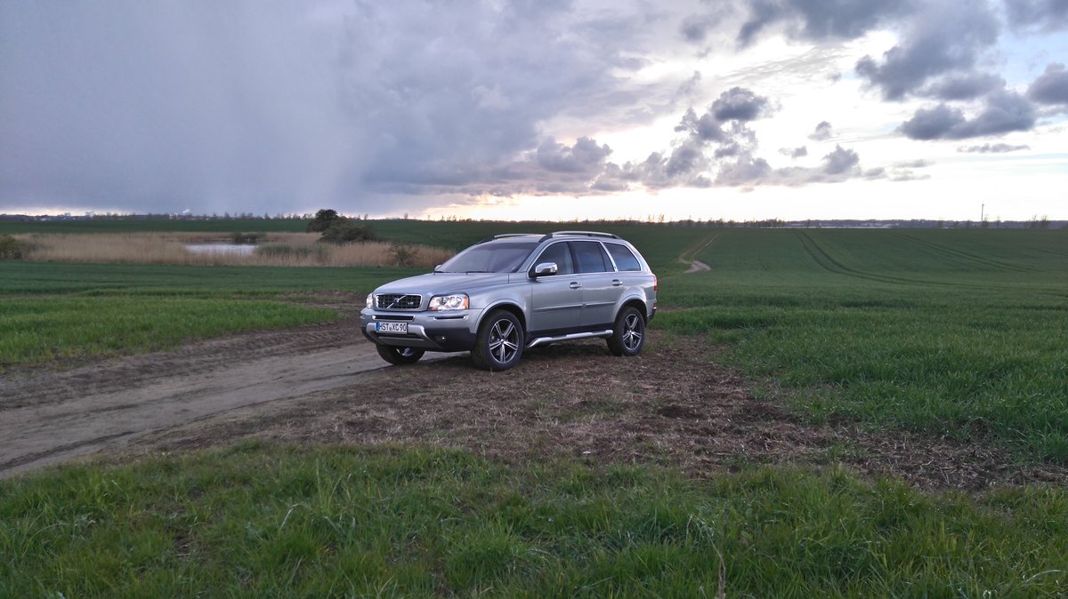 Volvo XC90 V8 Executive auf einem Feldweg. Im Hintergrund der Strelasund. Aufgenommen am 24.04.2016