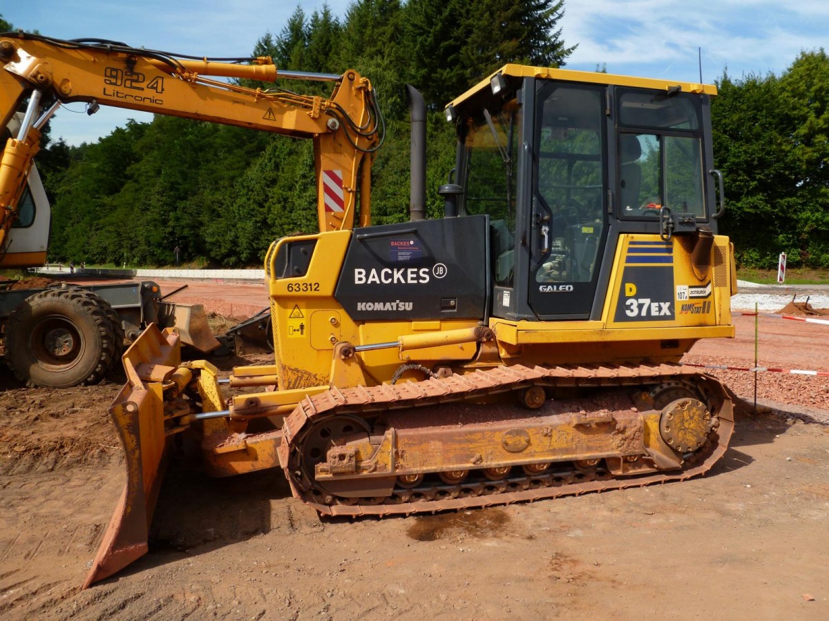 Komatsu D 37 EX-21 bei Arbeiten an der Umgehung von Merzig-Besseringen, 15.08.2013
