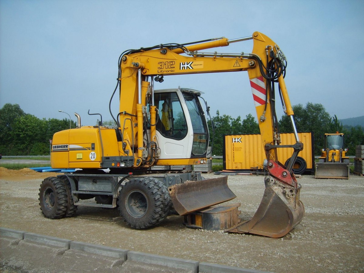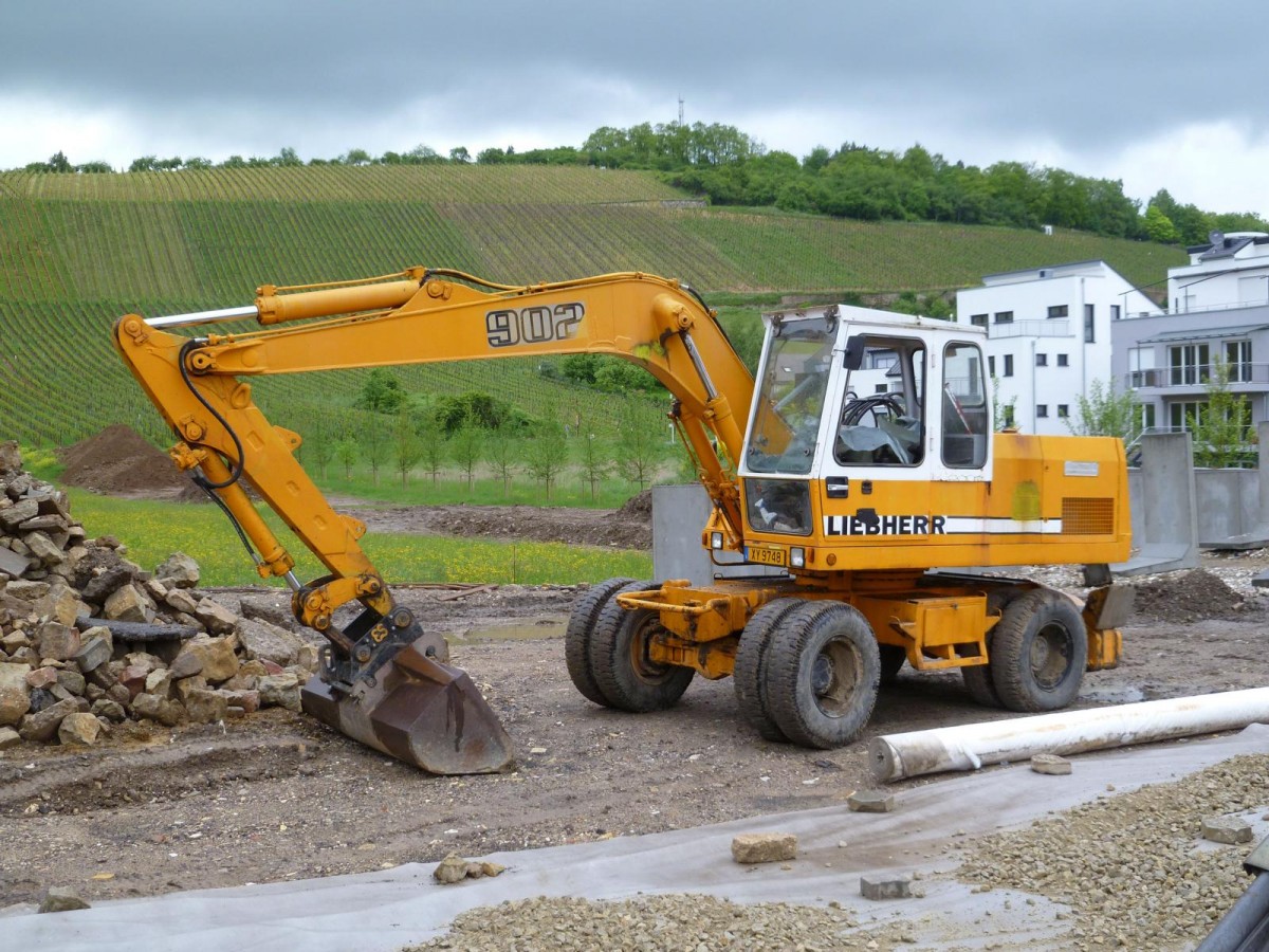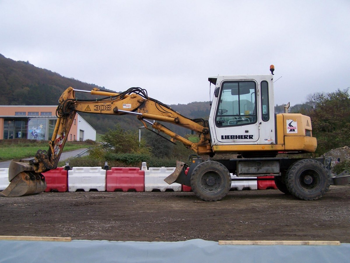 Liebherr A 312 Litronic eingesetzt bei der Erweiterung eines Parkplatzes für ein Möbelhaus in Konz, 10.06.2007
