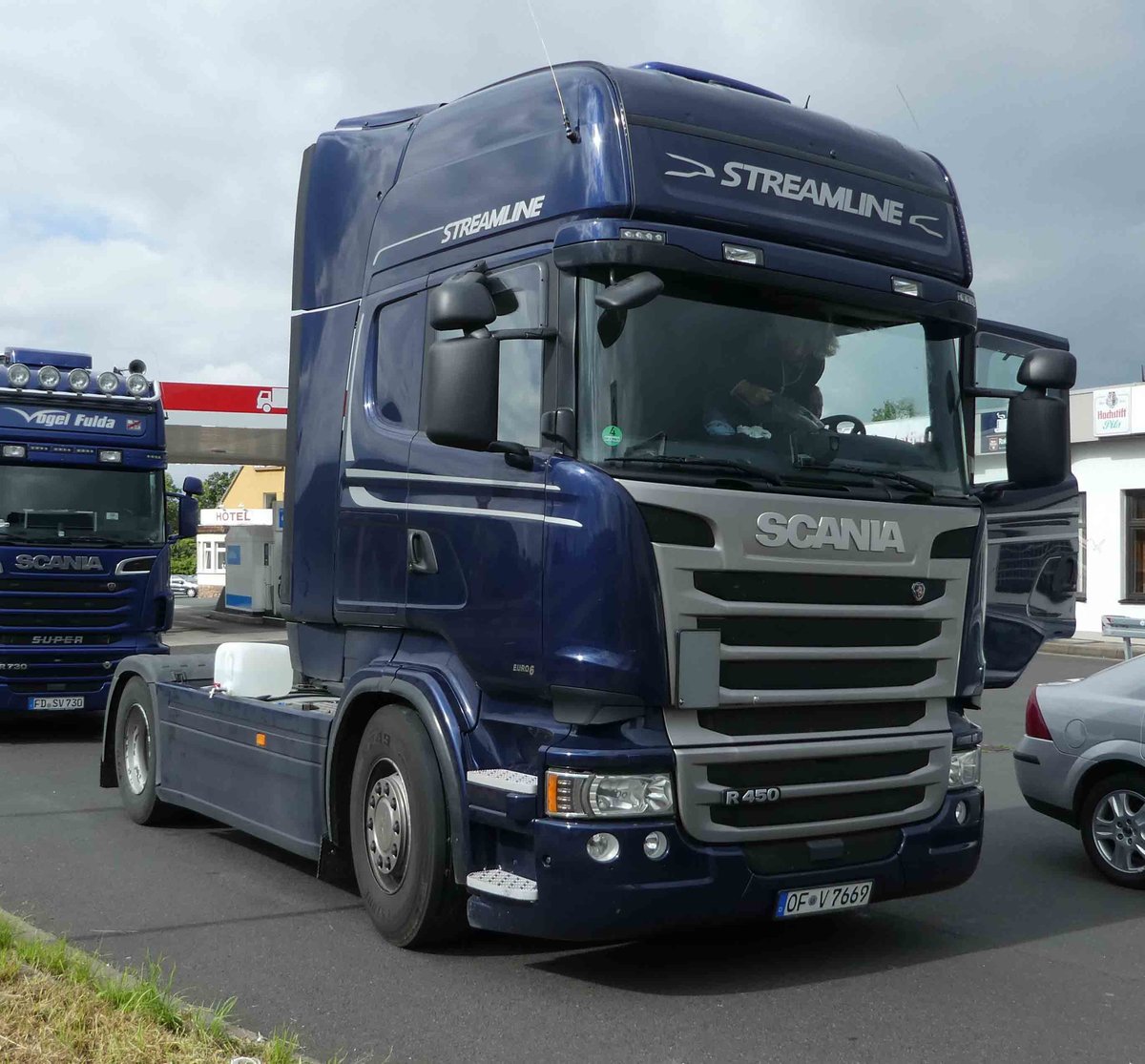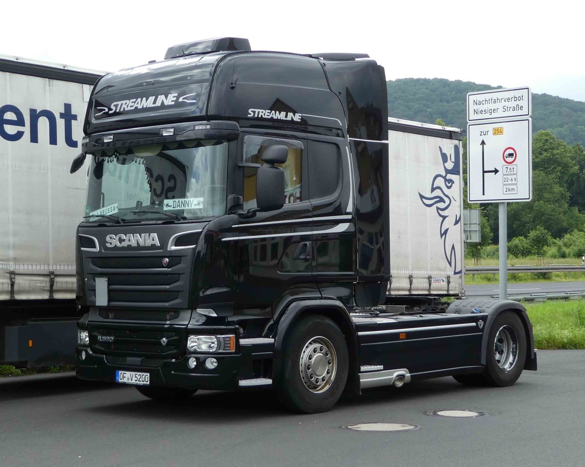 Scania R 450 bekommt eine Innenreinigung am Autohof Fulda Nord im Juni 2016