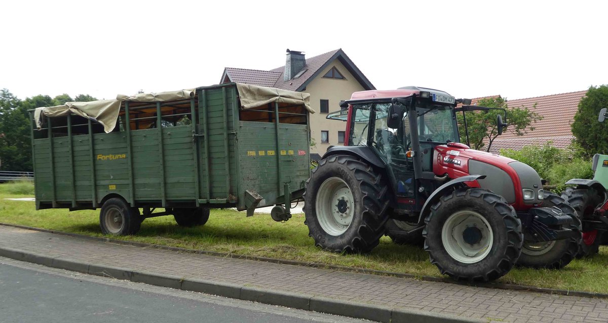 Valtra mit Viehanhänger, gesehen bei der Kreistierschau des Landkreises Fulda im Juni 2016