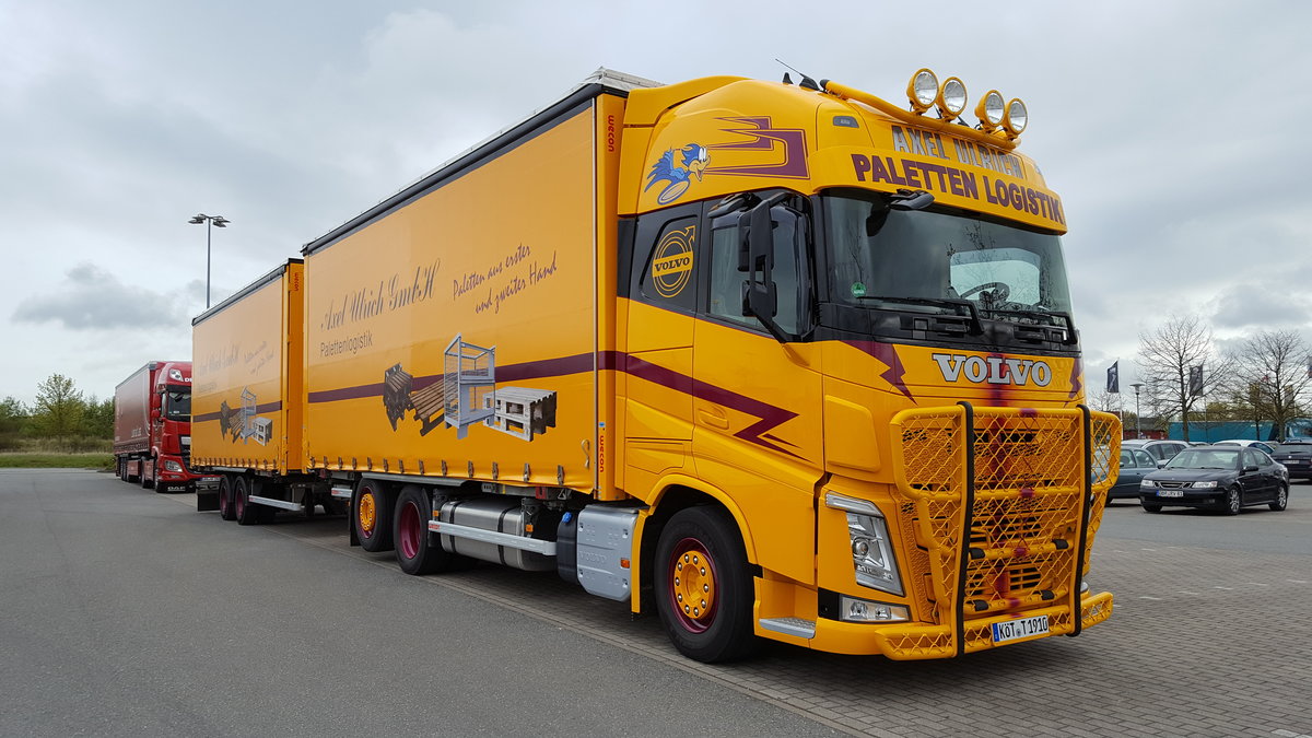 Der Volvo FH4 hat am 02.05.2016 beim Hanse Center geparkt.