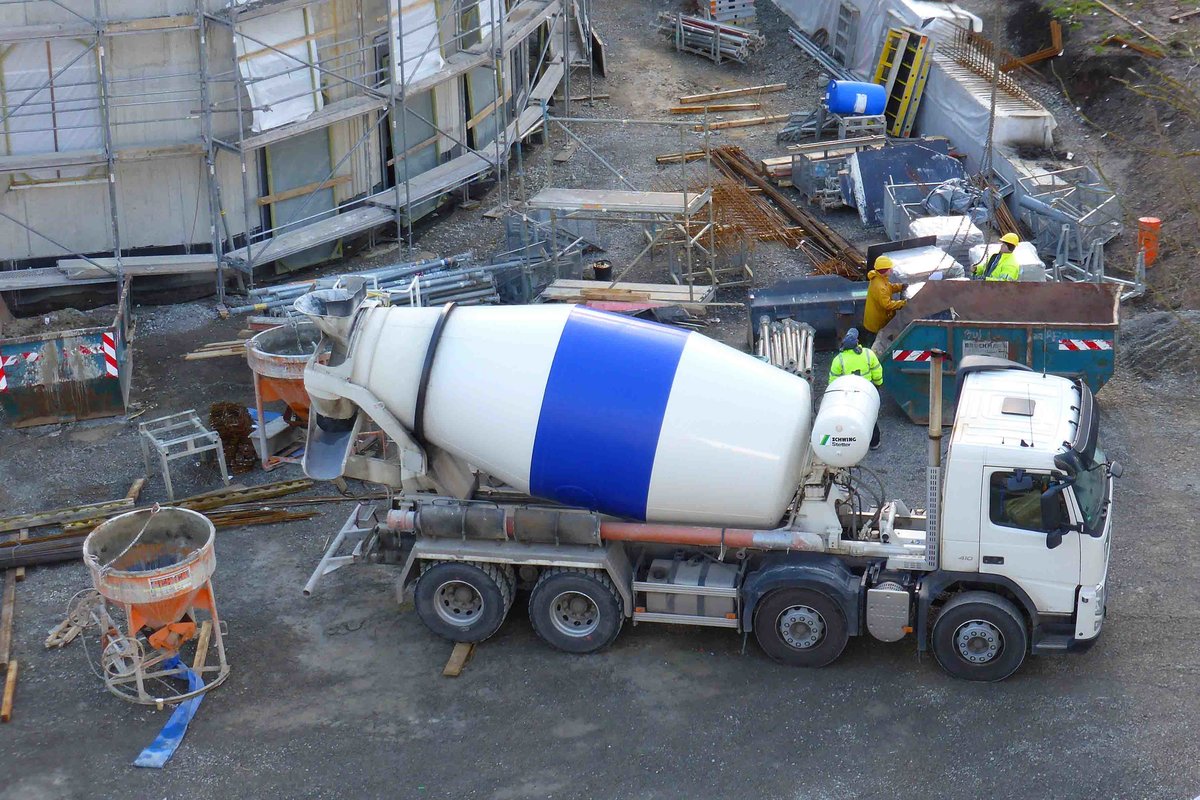 Volvo 410 als Betonanlieferungsfahrzeug auf einer Baustelle in Kassel, Februar 2016