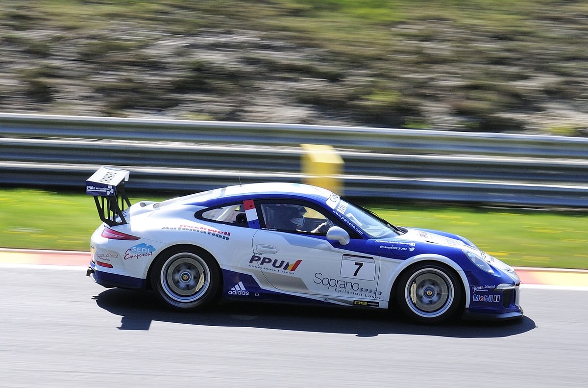 Mitzieher Nr.7 Team Saintéloc, Vincent Beltoise auf Porsche 991 GT3 Cup, Porsche Carrera Cup France, 7.5.2016 in Spa Francorchamps