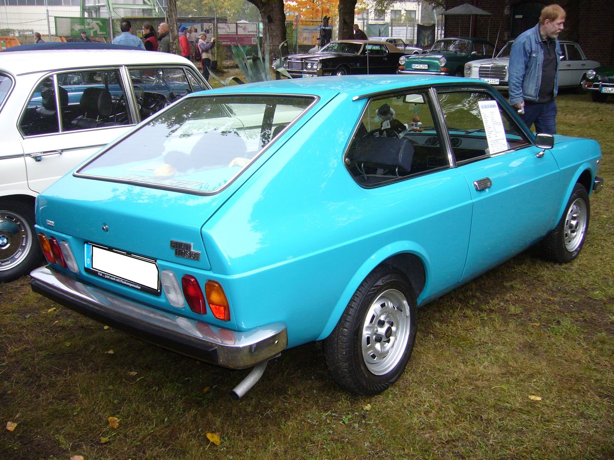 Heckansicht eines Fiat 128 3P Berlinetta 1300. 1975 - 1979. Das 3P steht übrigens für tre porte = 3 Türen. Oldtimertreffen an der Niebu(h)rg in Oberhausen am 23.10.2016.