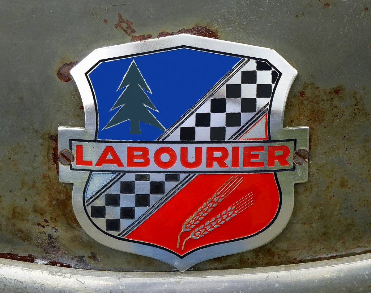 LABURIER, Logo am Kühler eines Oldtimer-Traktors von 1958, Nutzfahrzeughersteller aus Frankreich, Okt.2016