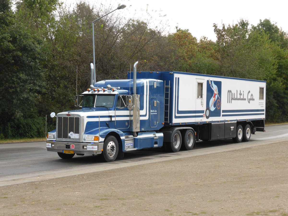 Peterbilt 377 als Teilnehmer der 15. Deutschlandfahrt für historische Nutzfahrzeuge beim Zwischenstopp in Trier am 05.09.2016 (Produktionszeitraum 1987 bis 2000. Dieses Exemplar ist Baujahr 1988, 450 PS, Höchstgeschwindigkeit 160 km/h, Länge der Zugmaschine 7,00 m, Höhe der Zugmaschine 4,00 m bei einem Leergewicht von 8.874 kg. Der Auflieger hat eine Länge 12,90 m und eine Höhe von 3,80 m bei einem Leergewicht von 12.270 kg und einem Gesamtgewicht von 22.000 kg.)