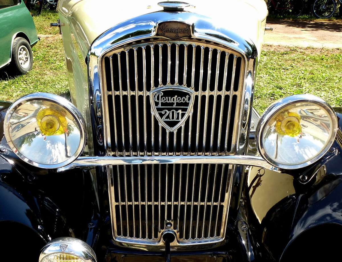 Peugeot 201, Kühlerfront mit Schriftzug an einem Oldtimer-PKW, gebaut von 1929-37, Okt.2016