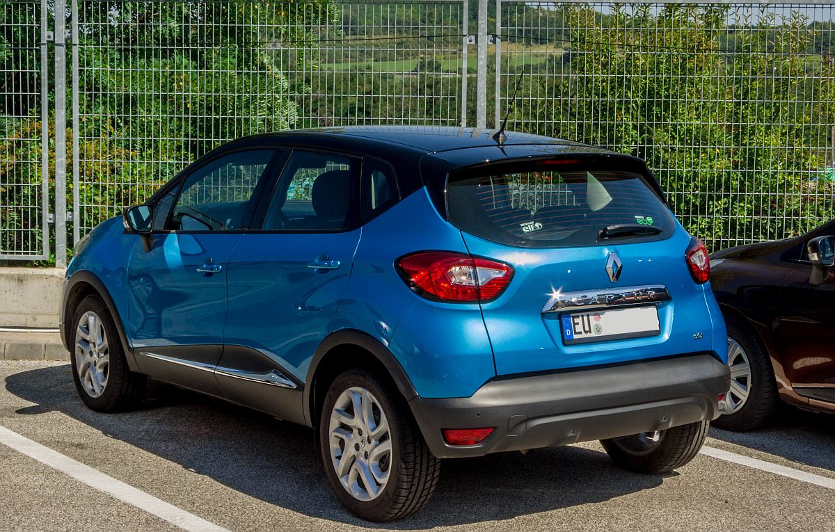 Blauer Renault Captur (Rückansicht), fotografiert am 28.08.2016.