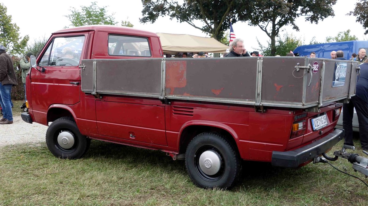 =VW T3 mit Ladepritsche, fotografiert bei dem Veterama 2016 in Mannheim, Juli 2016