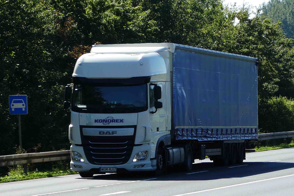 =DAF der Firma "KONDREX" unterwegs auf der B 27 im August 2016