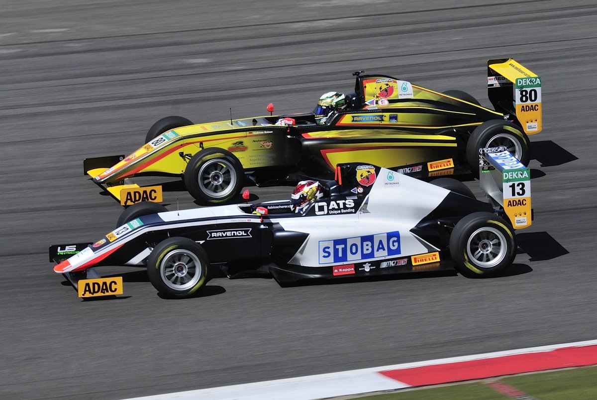 ADAC Formel 4, Zweikampf #25 Team Piro Sports Interdental(DEU)Fahrer: D.Ghattas(DEU) und #6 ADAC Berlin-Brandenburg e.V.(DEU)T.Beckhäuser(CZE) wärend dem Samstagsrennen auf dem Nürburgring, ADAC GT Masters Weekend. Fahrzeug: Tatuus F4-T014, Motor: Abarth 1,4-Liter-T-Jet